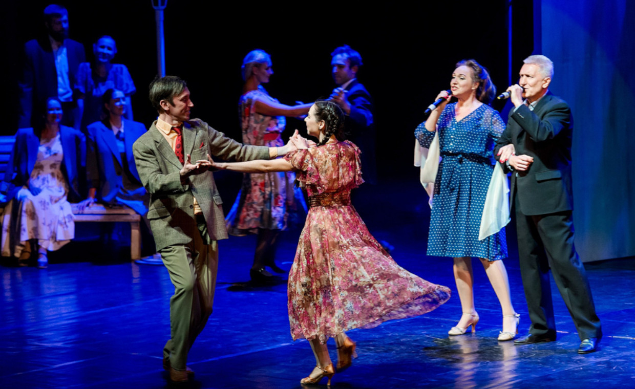 В исполнении ведущих артистов драмы звучат песни военных лет: «Синий платочек», «Ах, эти тучи в голубом», «Валенки», «Журавли», «Ночь коротка», «Бьётся в тесной печурке огонь» и другие.